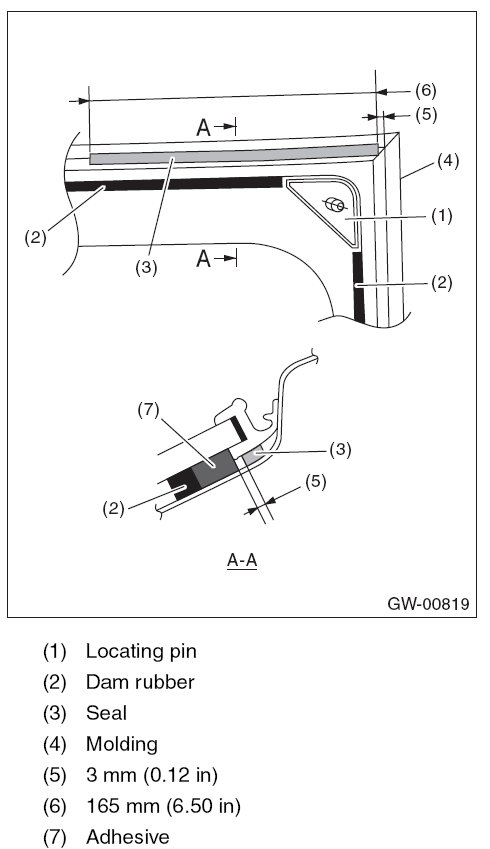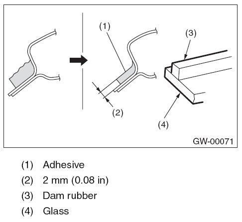 - For minimum drying time and vehicle standing time before driving after bonding, follow instructions or instruction manual from the adhesive manufacturer.