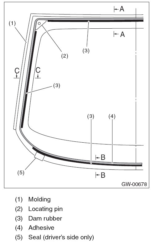 5. Attach the seal to the glass. (driver's side only)