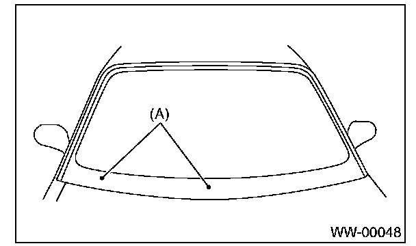 3. Align the wiper blade to ceramic print point mark A) of front window panel.