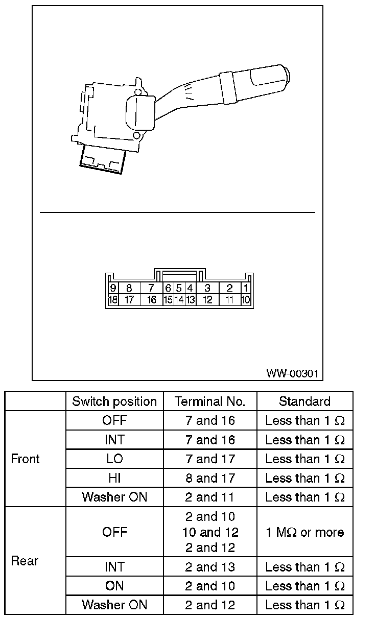 Wiper Switch: Testing and Inspection