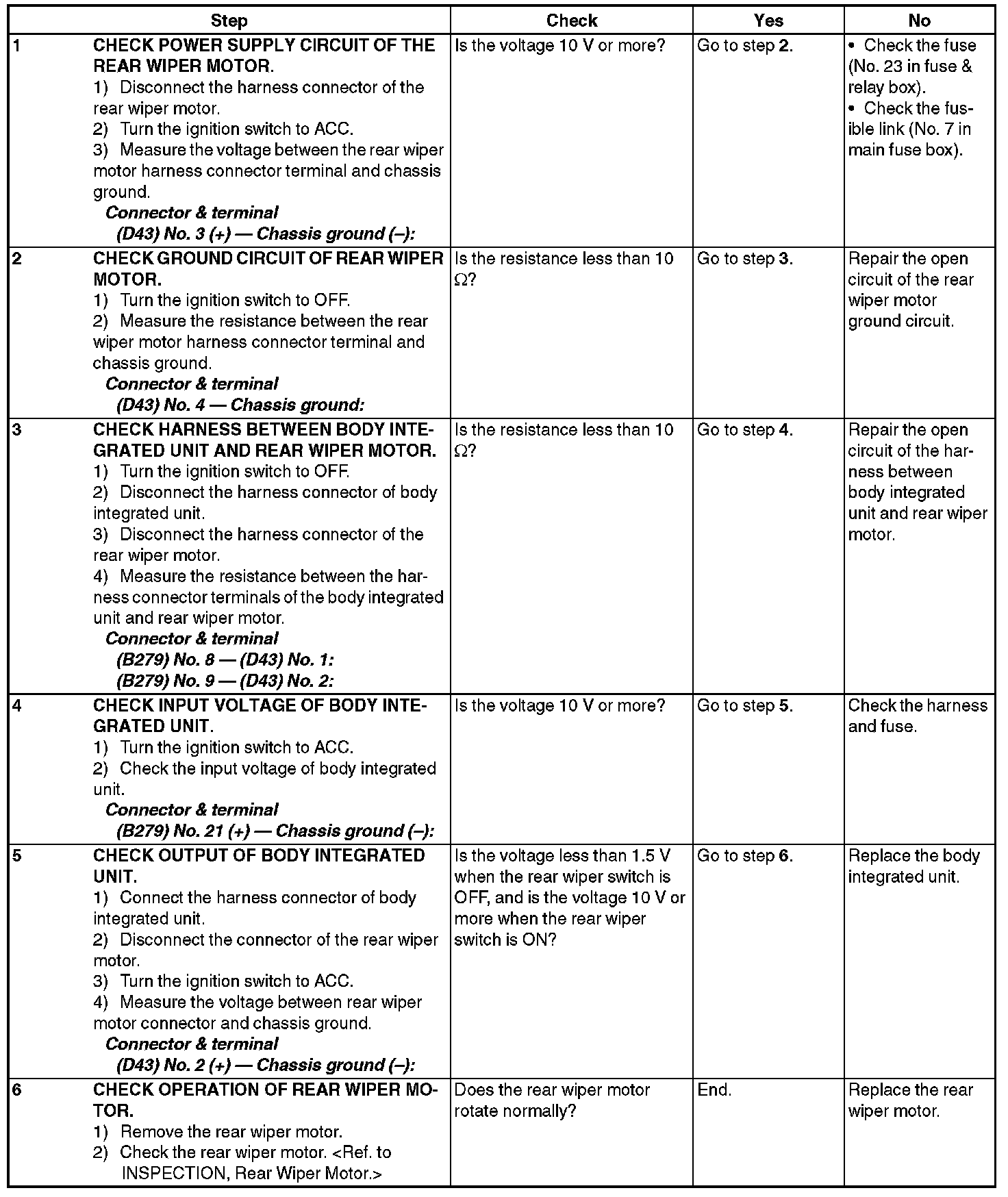 2. Check rear wiper motor circuit