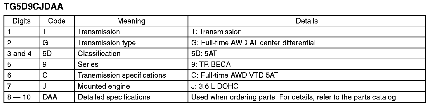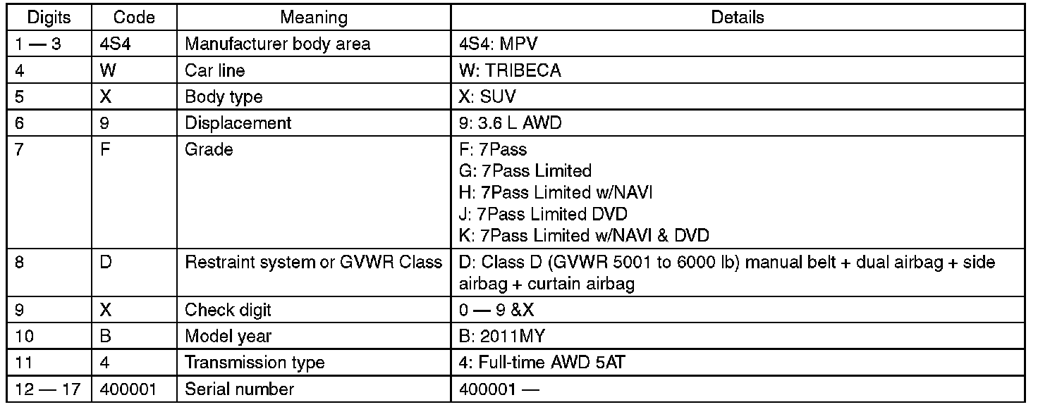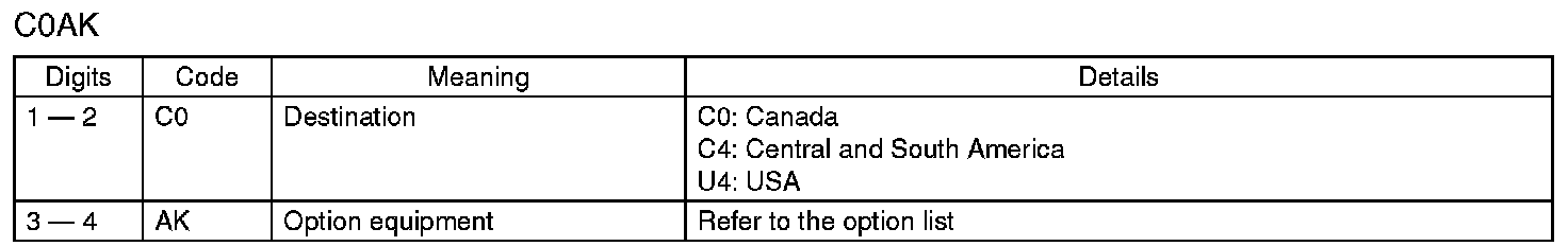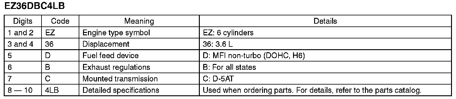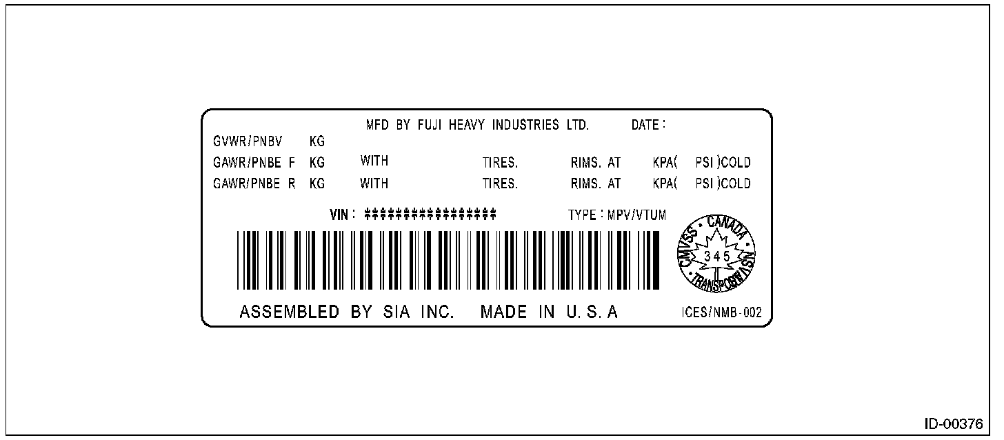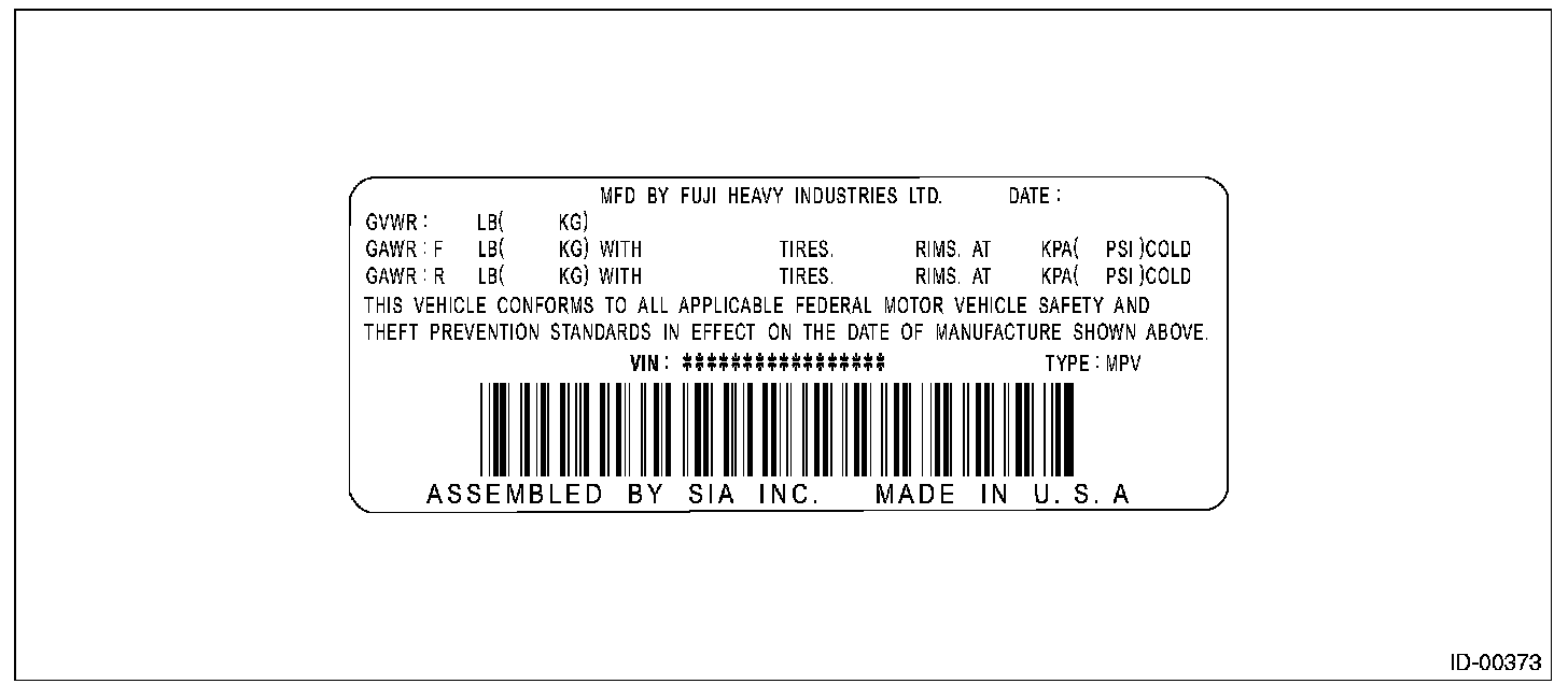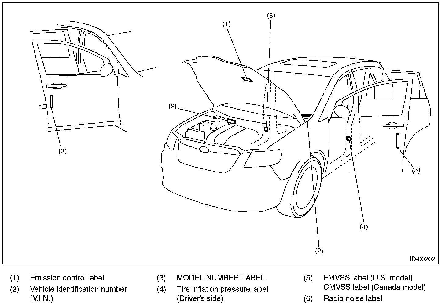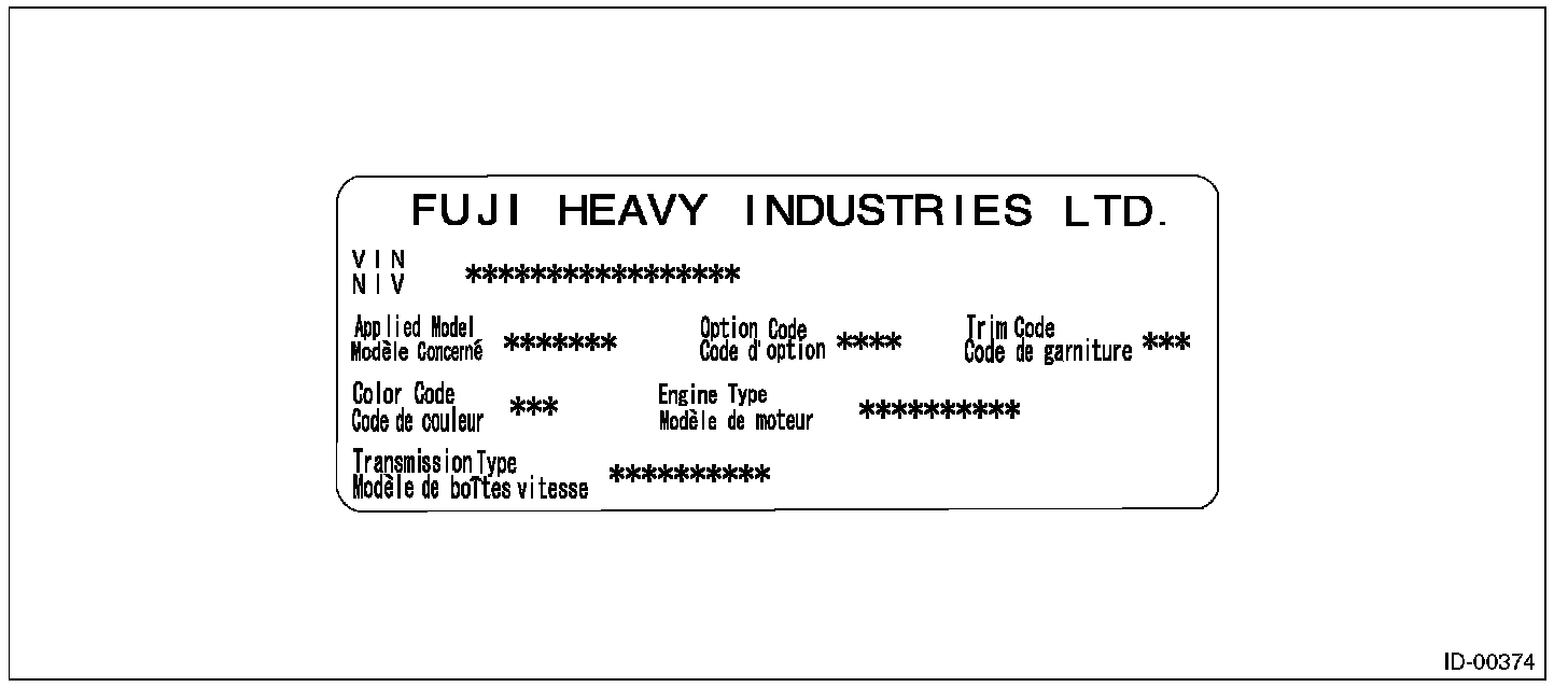 The model number label indicates the type, V.I.N. applied model, option code, trim code, engine type, transmission type and the exterior color code. This information is helpful when placing orders for parts.