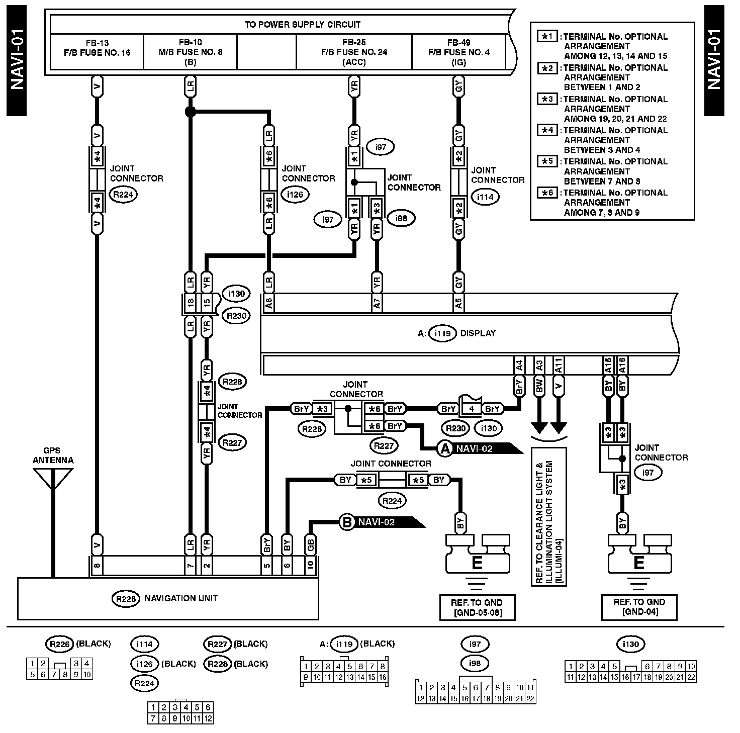 The locations of the Connectors or Grounds shown within these diagrams can be found via the connector or ground number at Vehicle Locations.
