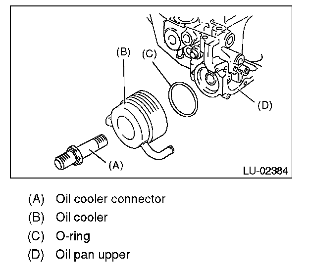 1) Tighten the oil cooler connector to install the oil cooler to the oil pan upper.