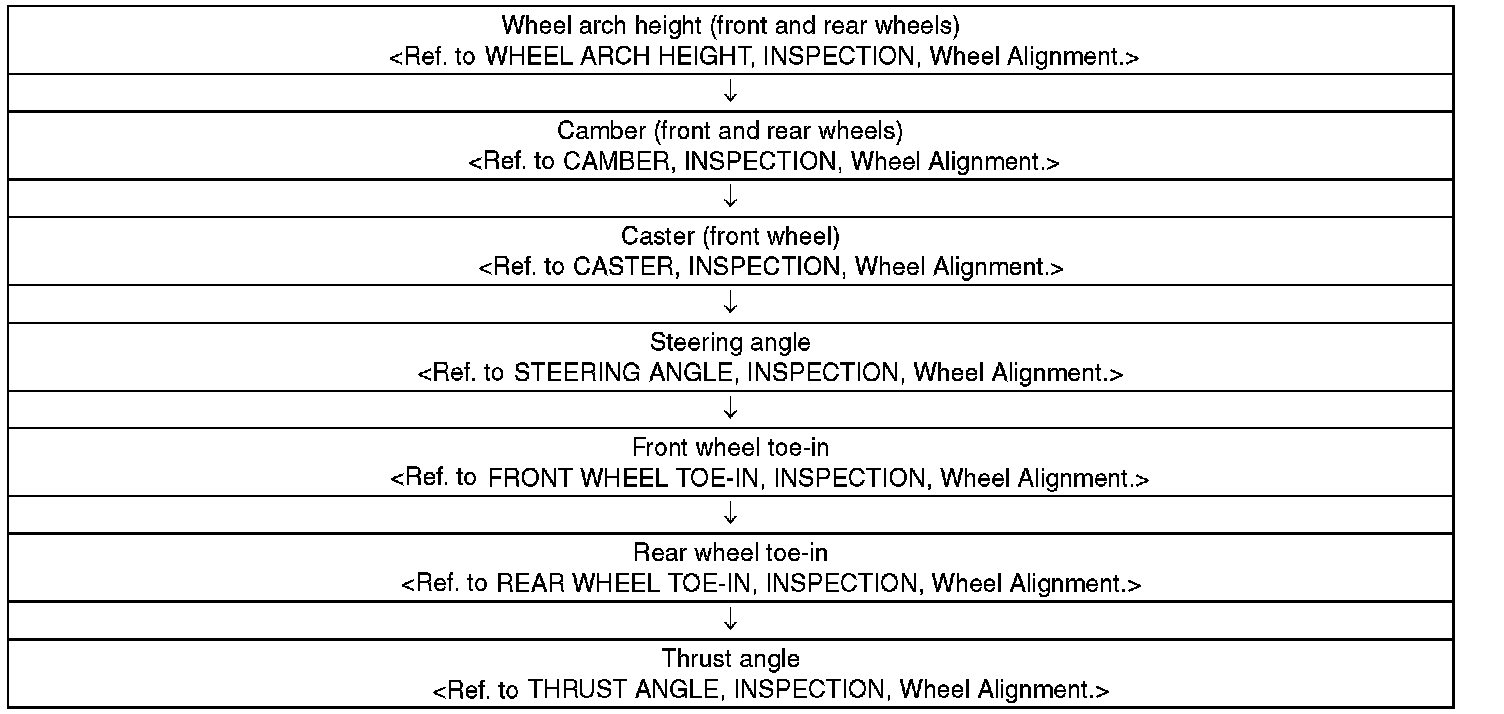 Check, adjust and measure the wheel alignment in accordance with the procedures indicated in the figure.