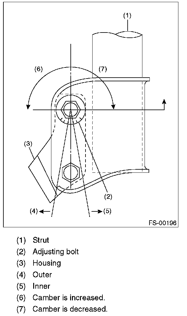 3) Turn the camber adjusting bolt so that the camber is set at specification.