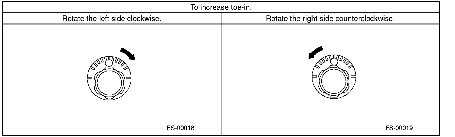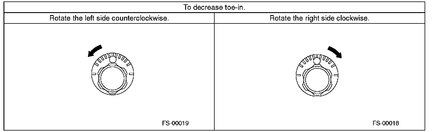 2) When one rear wheel is adjusted in a toe-in direction, adjust the other rear wheel equally in toe-out direction, in order to make the thrust angle adjustment.