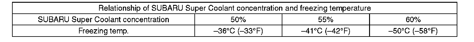 Use the SUBARU Super Coolant with a 50 - 60% concentration in order to obtain maximum antifreeze and anti-rust performance.