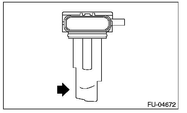 2. Check the voltage changes when air is blown to the mass air flow sensor unit in arrow direction.