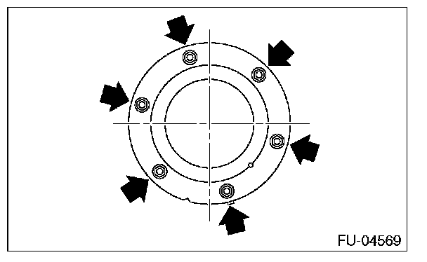 - Tighten the nuts and bolts to the specified torque in the order as shown in the figure.