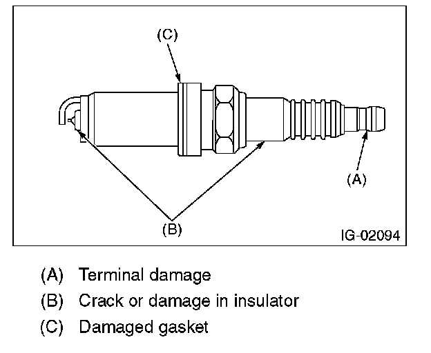 2. Check the spark plug electrode and condition of the insulator. If abnormal, check and repair the cause and replace the spark plug.