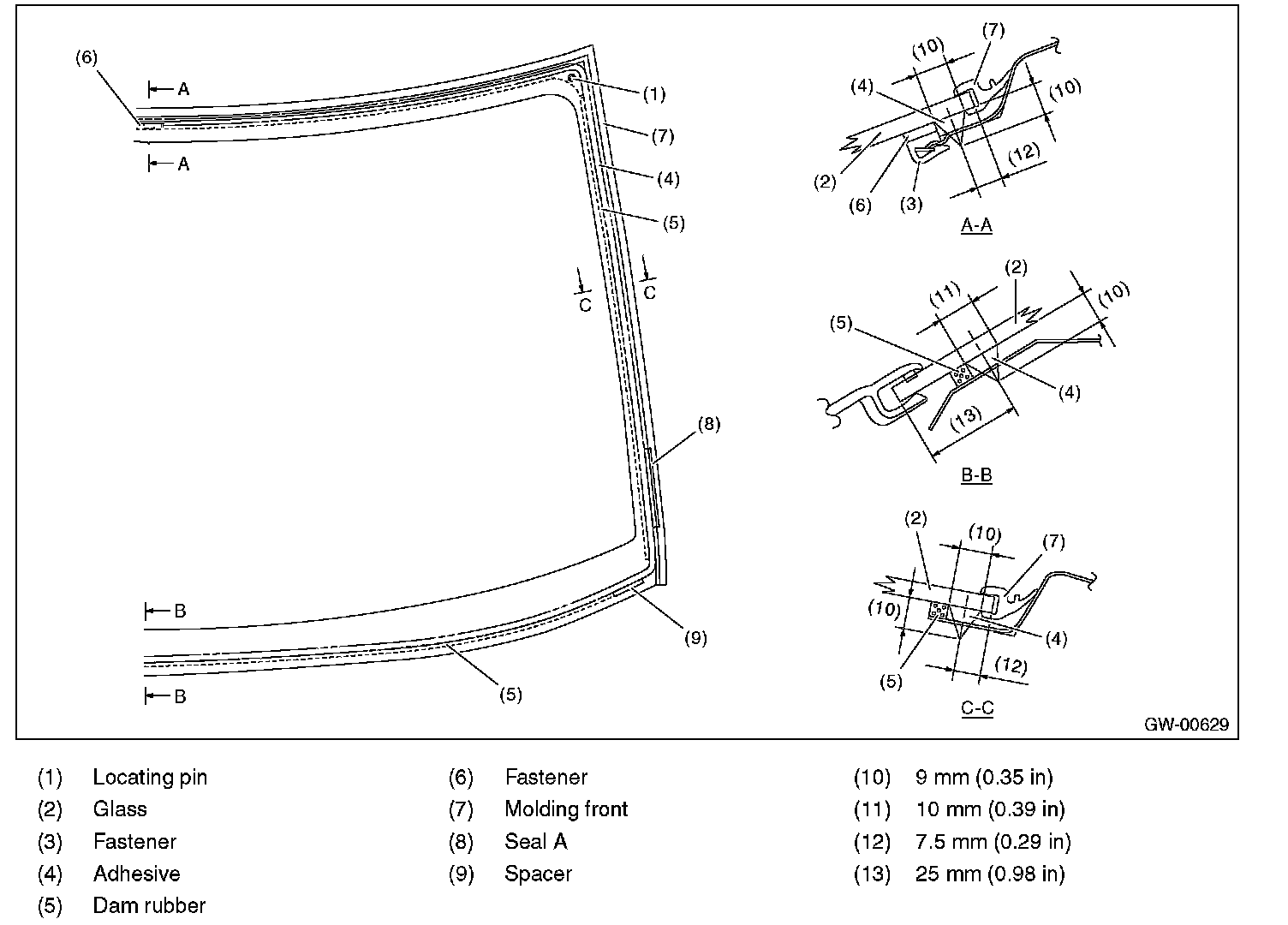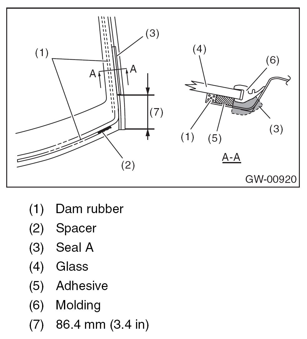 - For minimum drying time and vehicle standing time before driving after bonding, follow instructions or instruction manual from the adhesive manufacturer.