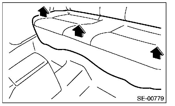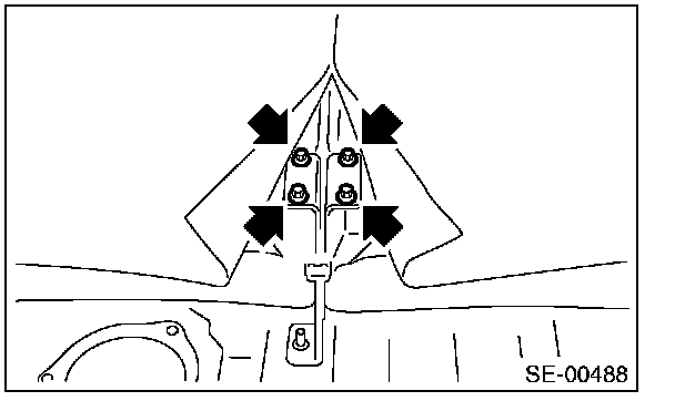 CAUTION: If the hooks on the vehicle body side is disengaged (remained on the seat cushion side) when removing the rear seat cushion, always replace with new hooks to prevent the decline of the fixed force of the seat.