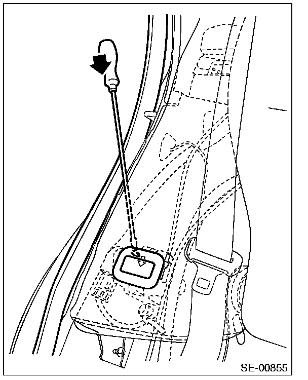 - Direct a light from under the rear seat backrest shoulder to easily identify the tab position.