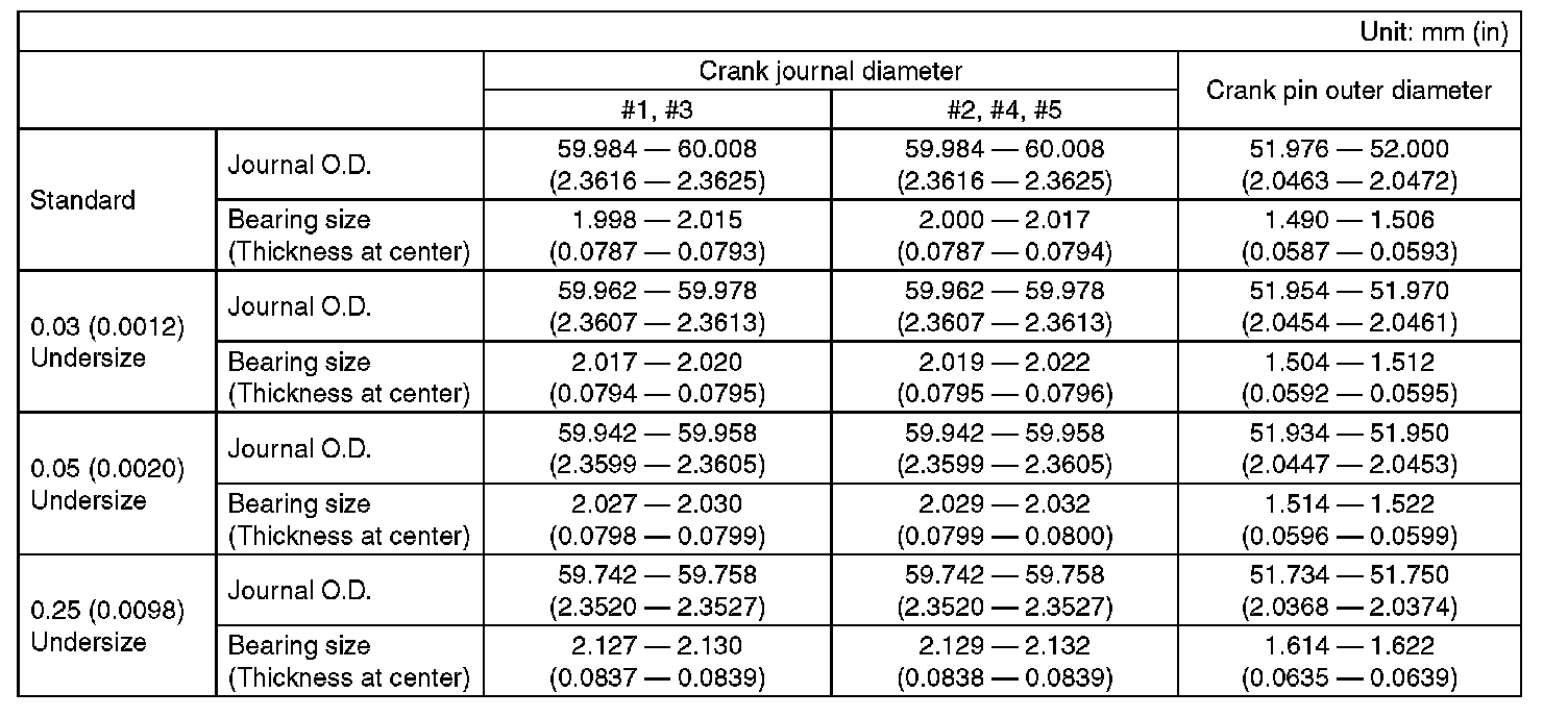 Oil Clearance Standard 0.010 - 0.030 mm (0.0004 - 0.0012 in)