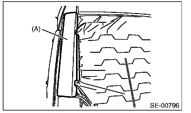 9. Remove the pad (A), and remove the mounting nut from the side airbag module.
