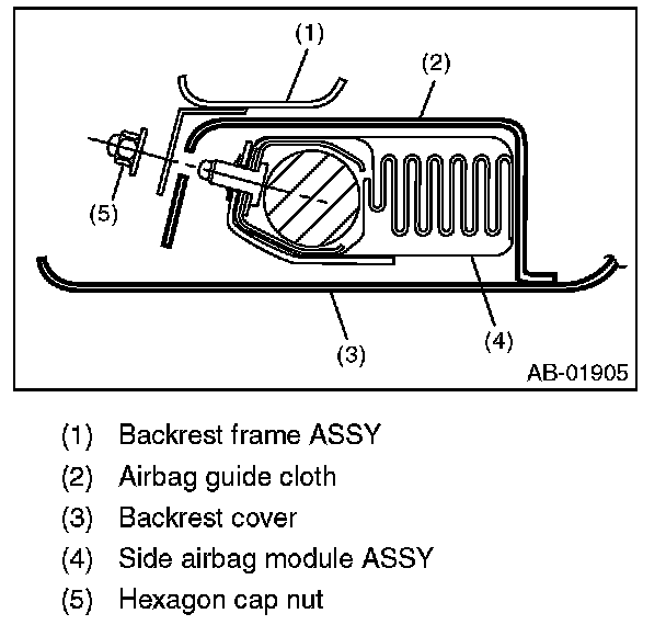 Besides, when the backrest cover is not installed securely, the side airbag module may not be activated properly, therefore keep strictly to the following procedure.