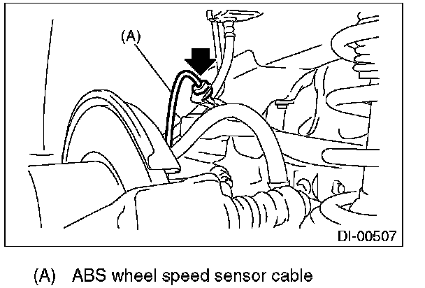 (1) Remove the ABS wheel speed sensor cable from the clamp.
