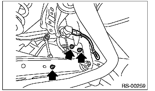 (2) Disconnect the connector, and then remove the nut to remove the rear vehicle height sensor. (model with auto headlight beam leveler, left side only)