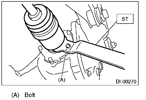 When removing the DOJ from the rear differential, fit the ST to the bolts as shown in the figure so as not to damage the side retainer.