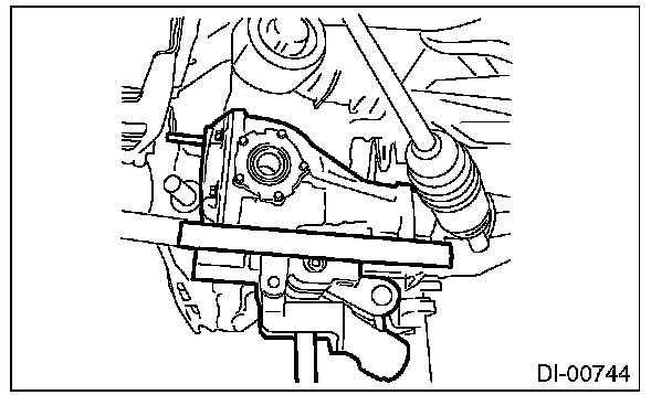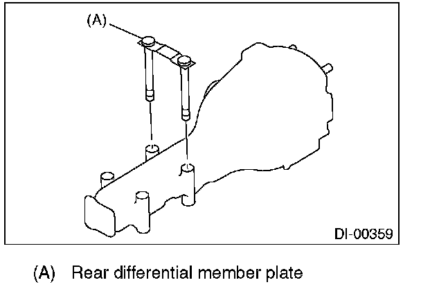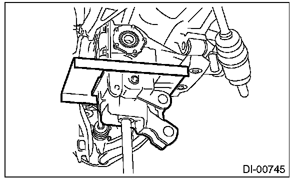 16) While slowly lowering the transmission jack, move the rear differential forward, and remove the rear differential from the vehicle.