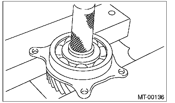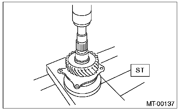 1) Set the ST against the inner race of the bearing, and install the drive shaft.