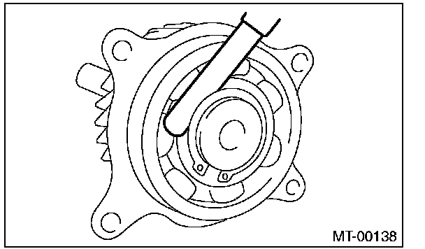 3) Measure the clearance between snap ring and inner race of ball bearing with a thickness gauge.