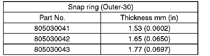If the measurement is not within specification, select a suitable snap ring and replace it.