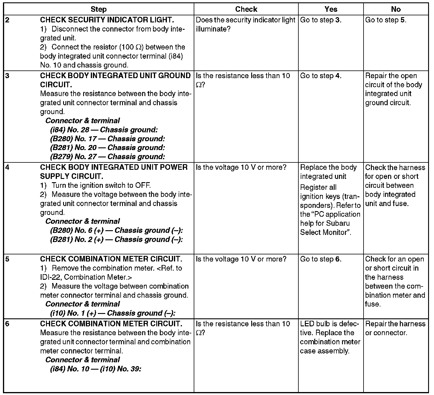 1. CHECK SECURITY INDICATOR LIGHT CIRCUIT