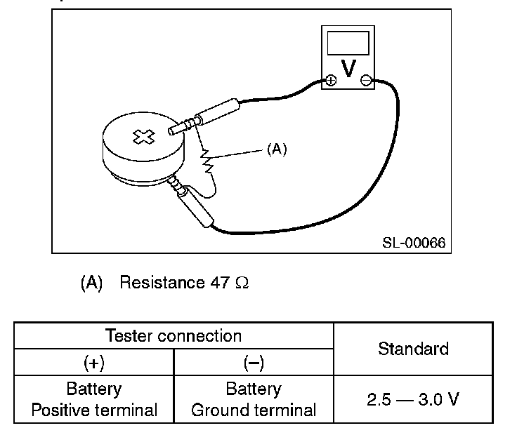 2. Replace the battery if the inspection result is not within the standard value. (Use CR2025 or equivalent.)