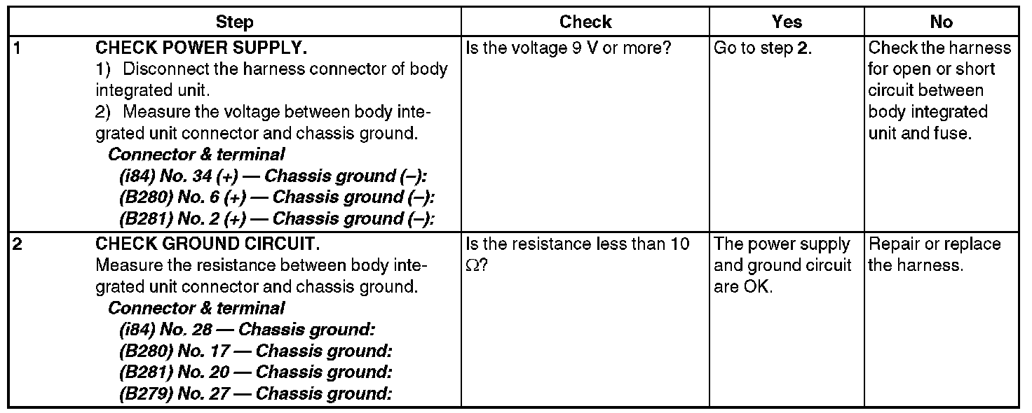 CHECK POWER SUPPLY & GROUND CIRCUIT