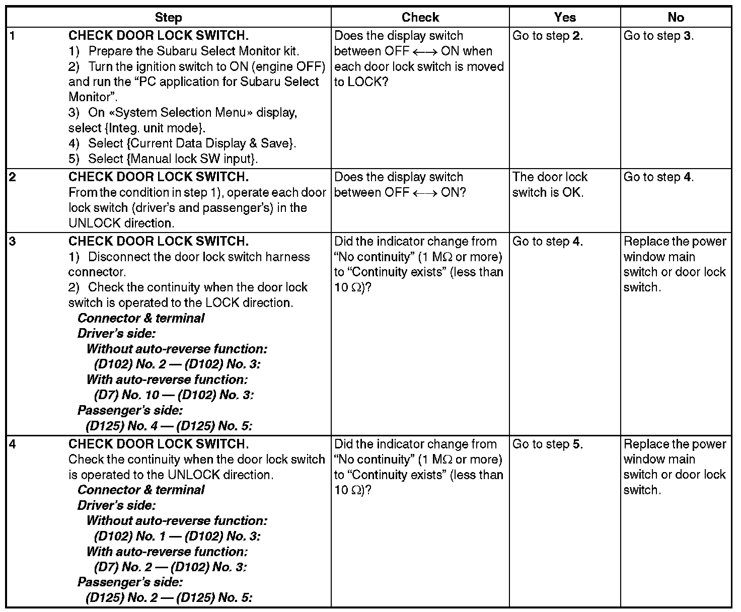 CHECK DOOR LOCK SWITCH