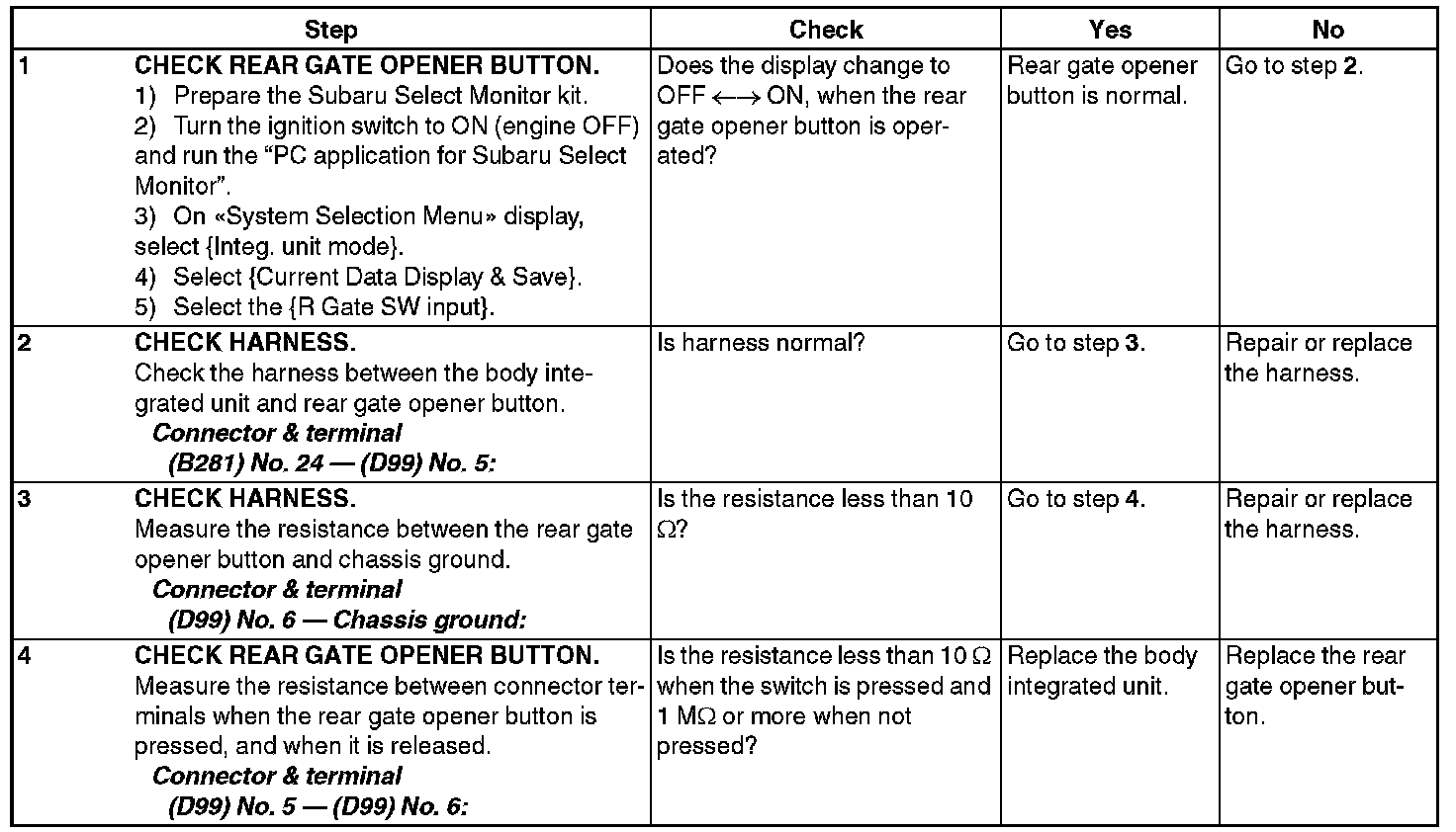 CHECK REAR GATE OPENER BUTTON CIRCUIT