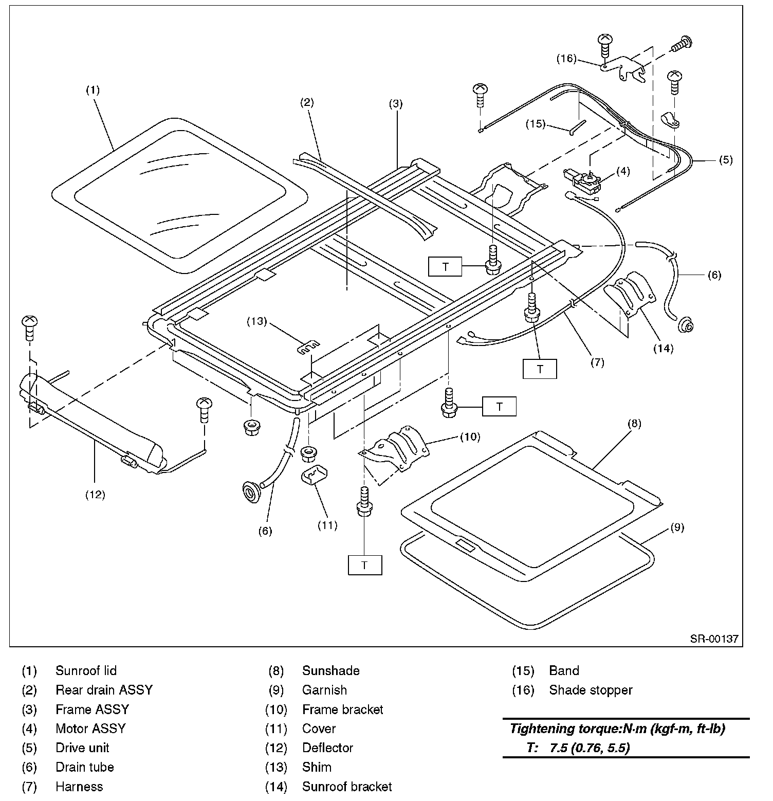 3. If it exceeds the specification, check the sunroof lid, sunshade, deflector and guide rail assembly for improper installation.