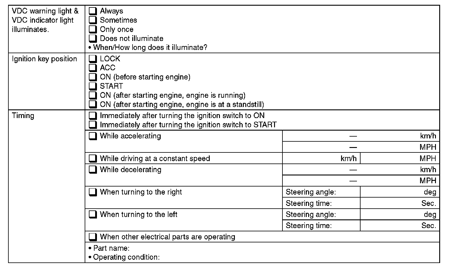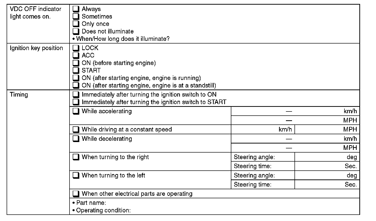 STATE OF VDC WARNING LIGHT & VDC INDICATOR LIGHT
