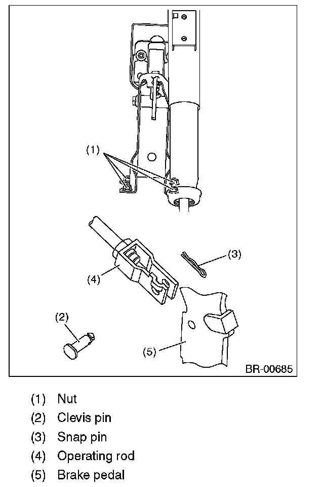 3) Install clevis pin and snap pin which secure the operating rod to the brake pedal.