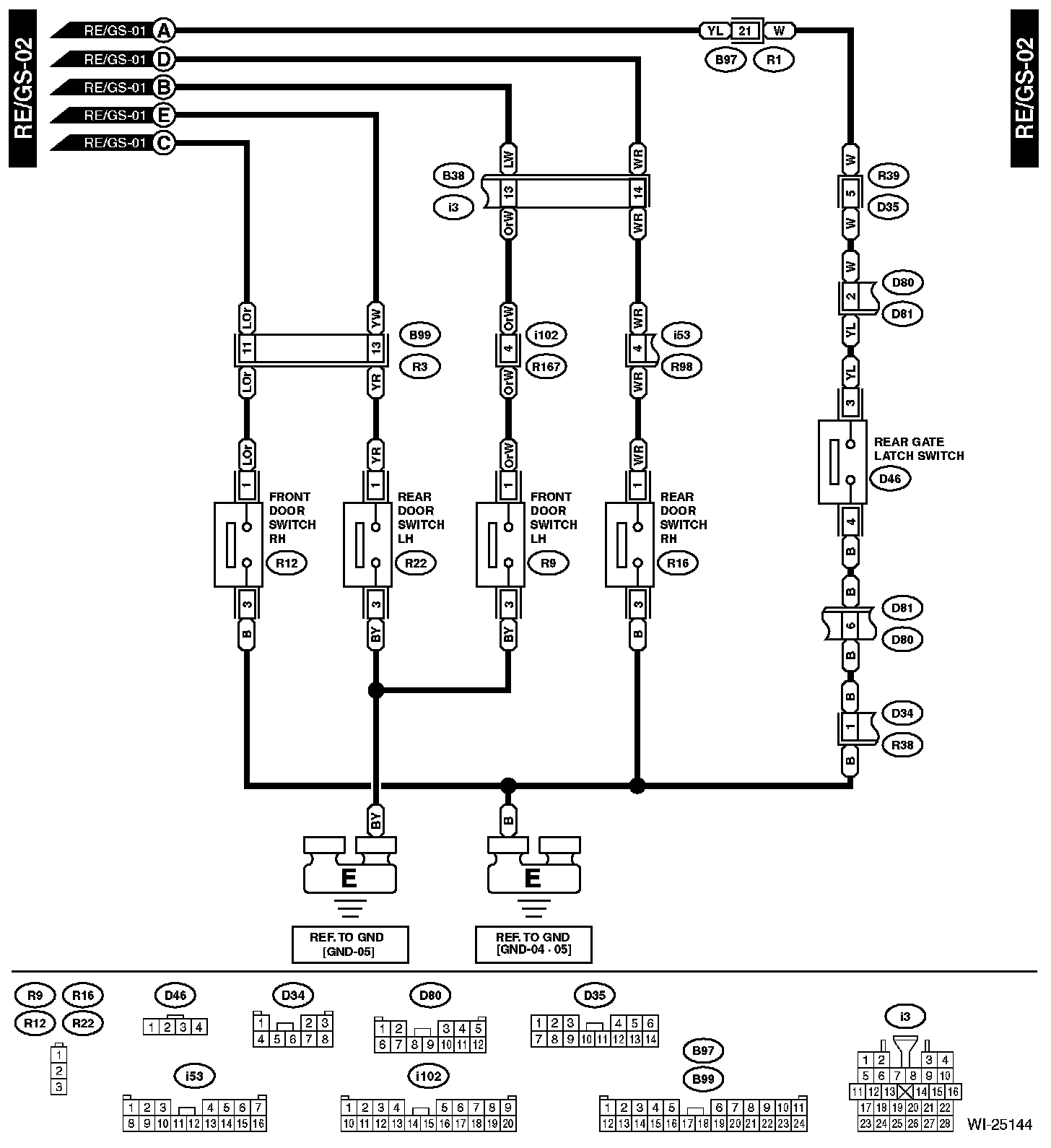 Connector and Ground Locations: The locations of the Connectors or Grounds shown within these diagrams can be found via the connector or ground number at Vehicle Locations. Locations