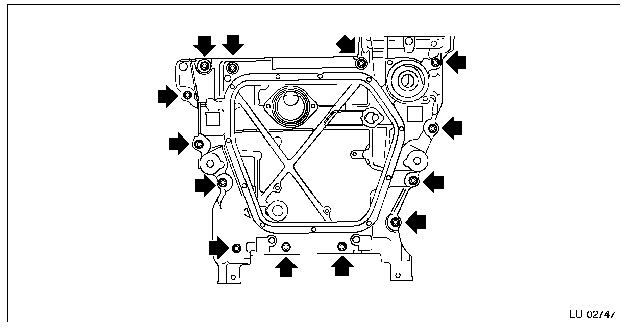 6) Remove the bolts which secure oil pan upper to cylinder block, and remove the oil pan upper.