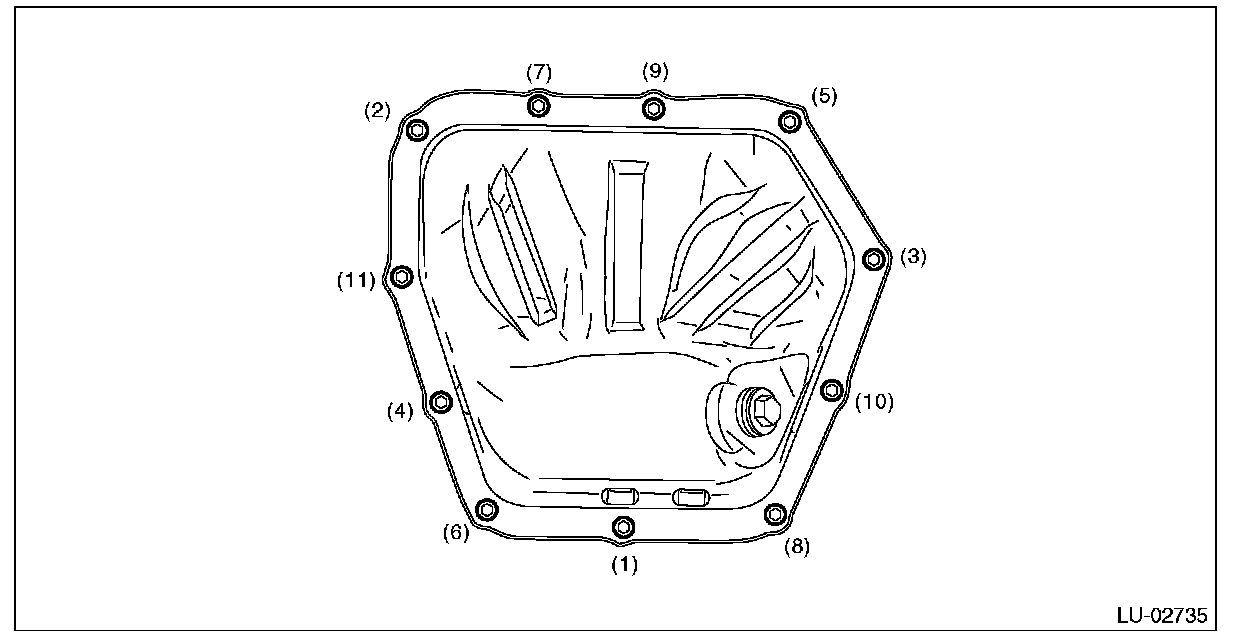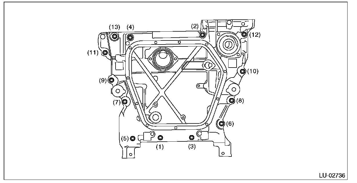 2) Tighten the bolts to install the oil pan to the oil pan upper in the numerical order.