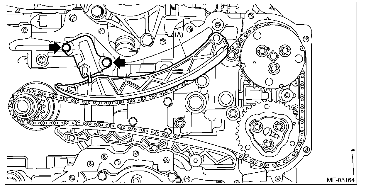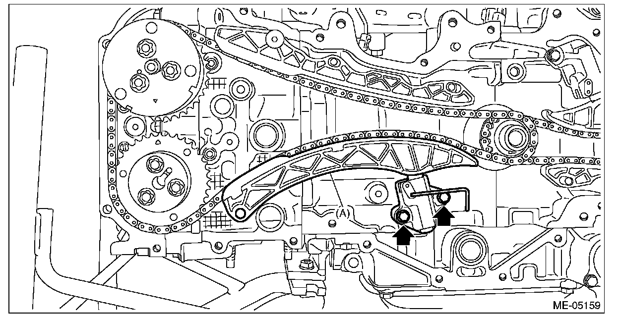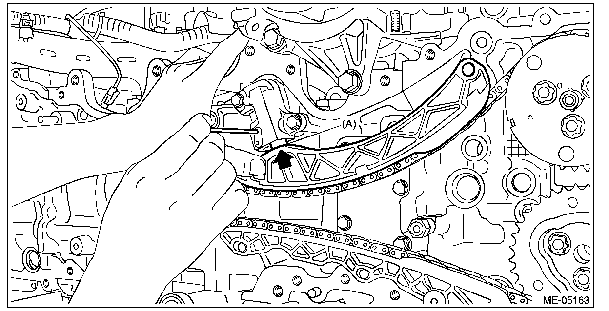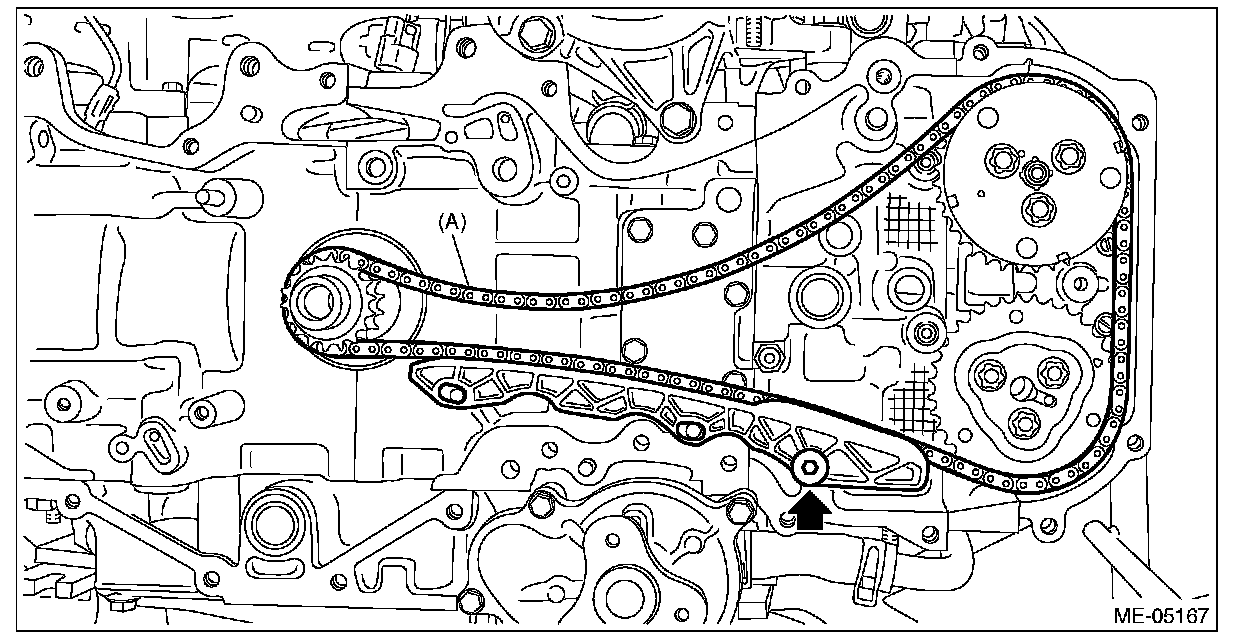 6) Remove the chain guide LH, and remove the timing chain LH (A).