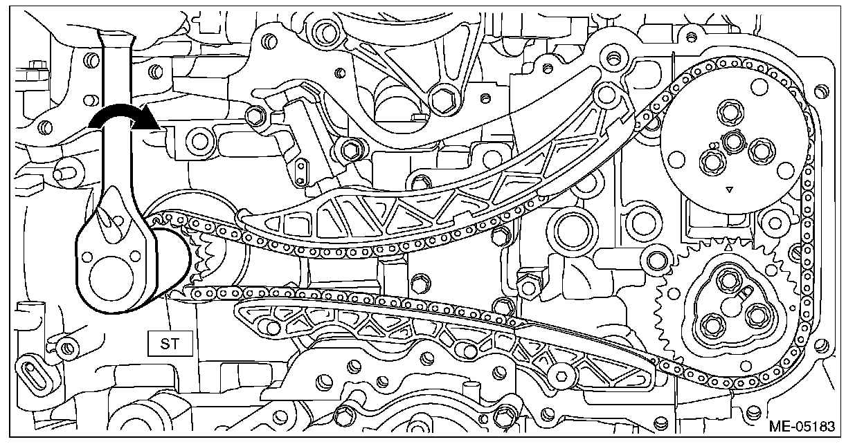 10) Using the ST, turn the crankshaft clockwise, and make sure that there are no abnormal conditions.