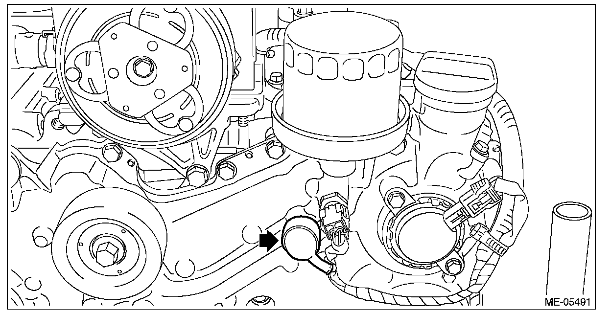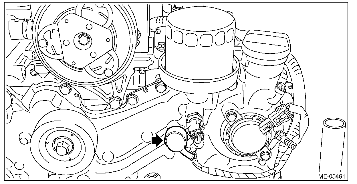 4) Remove the engine oil temperature sensor.