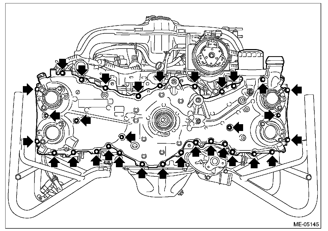 1) Install the O-rings to cylinder head RH, cylinder head LH, cylinder block LH and oil pan upper.