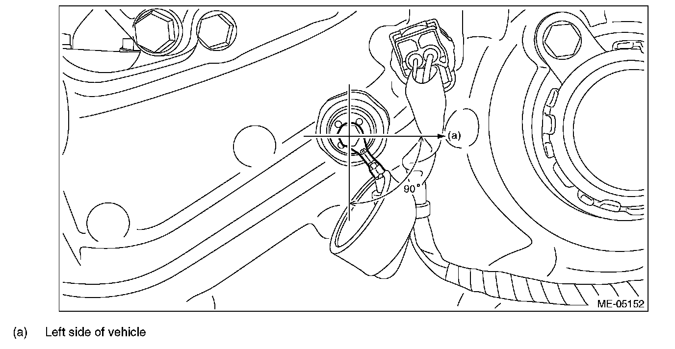 The oil pressure switch harness must be positioned toward the left lower side of the vehicle within the range of 90°.
