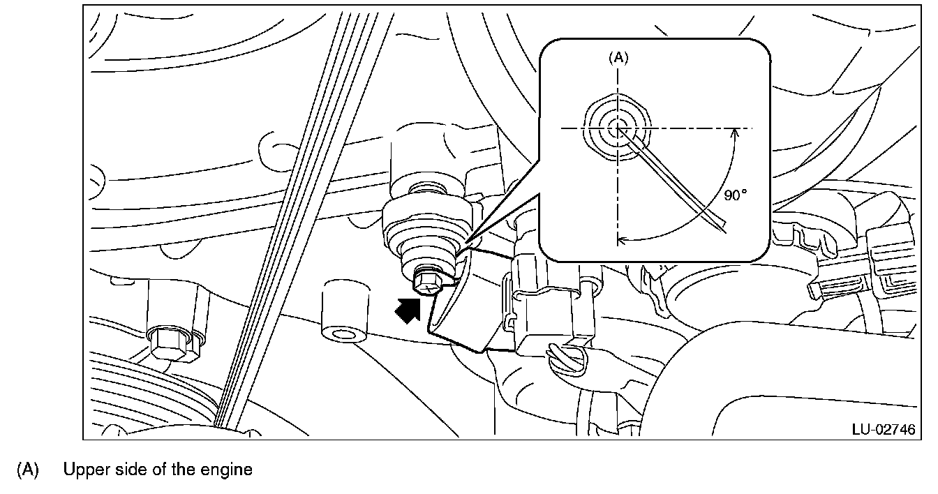 The oil pressure switch harness must be tightened within the range of a 90° angle as shown below.