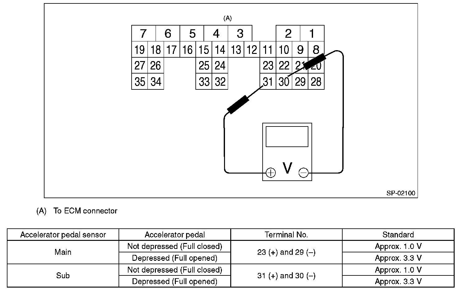 1. CHECK ACCELERATOR PEDAL SENSOR AREA (METHOD WITH CIRCUIT TESTER)
