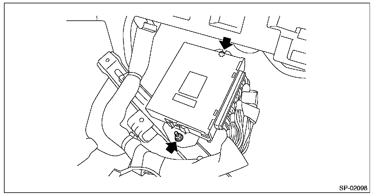 6. Remove the nuts and bolts which hold the ECM to the bracket.