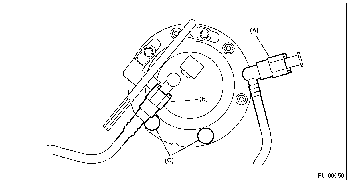 - After tightening, install the rubber cap (C) at the position shown in the figure.
