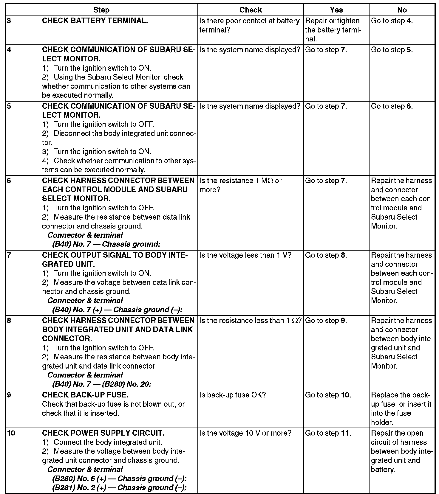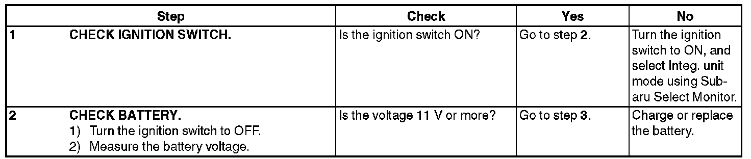 CAUTION: For model with immobilizer, immobilizer registration work is necessary when the body integrated unit replaced. For details, refer to the "PC application help for Subaru Select Monitor".