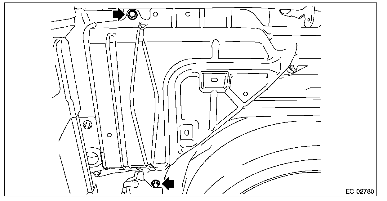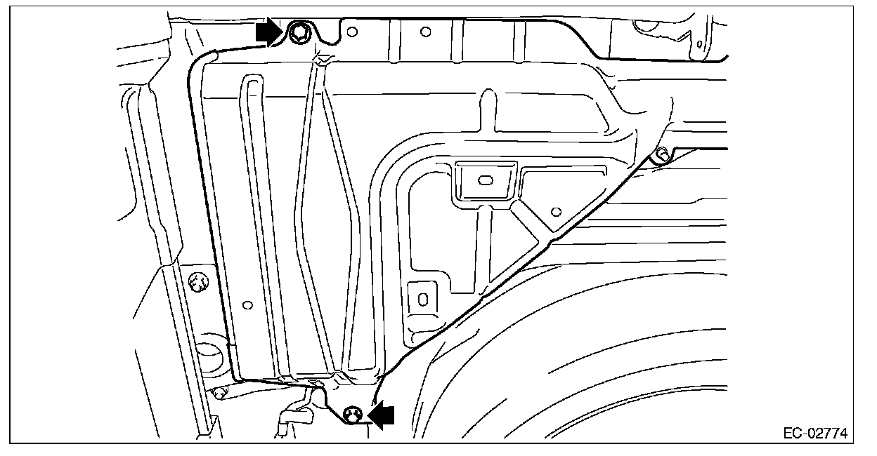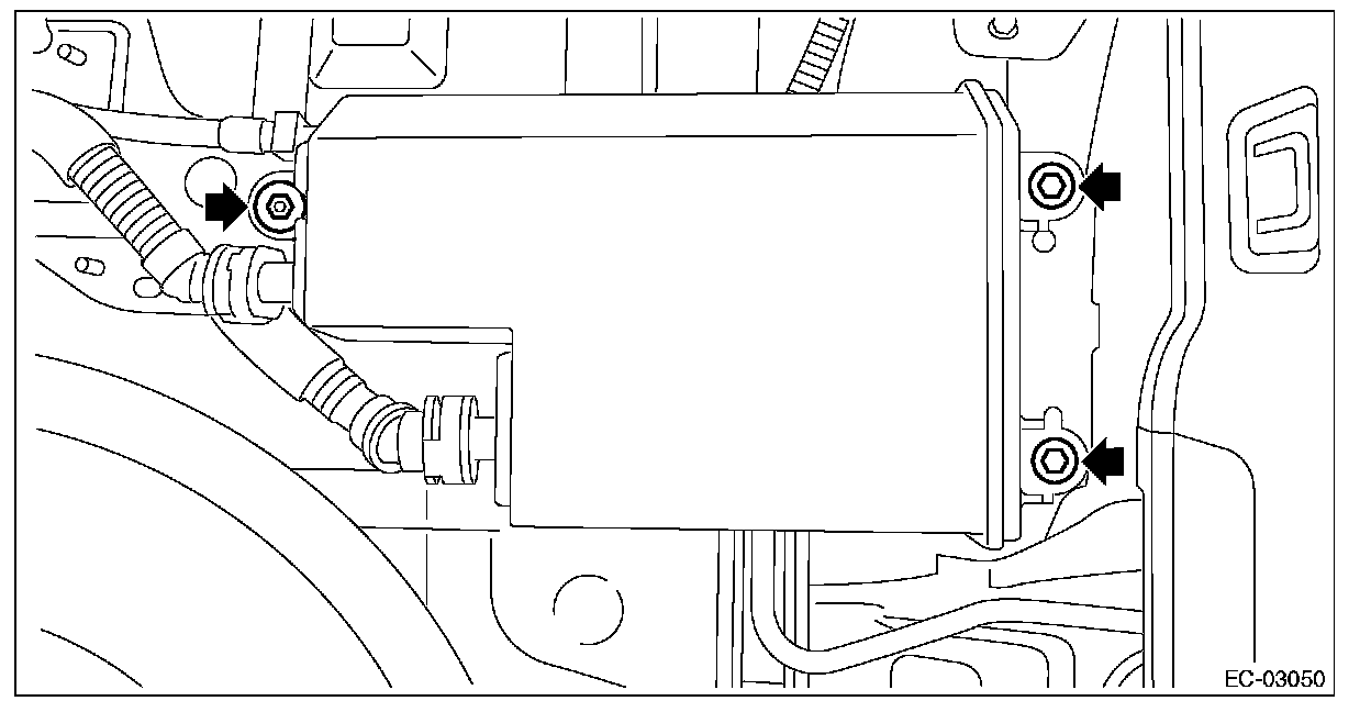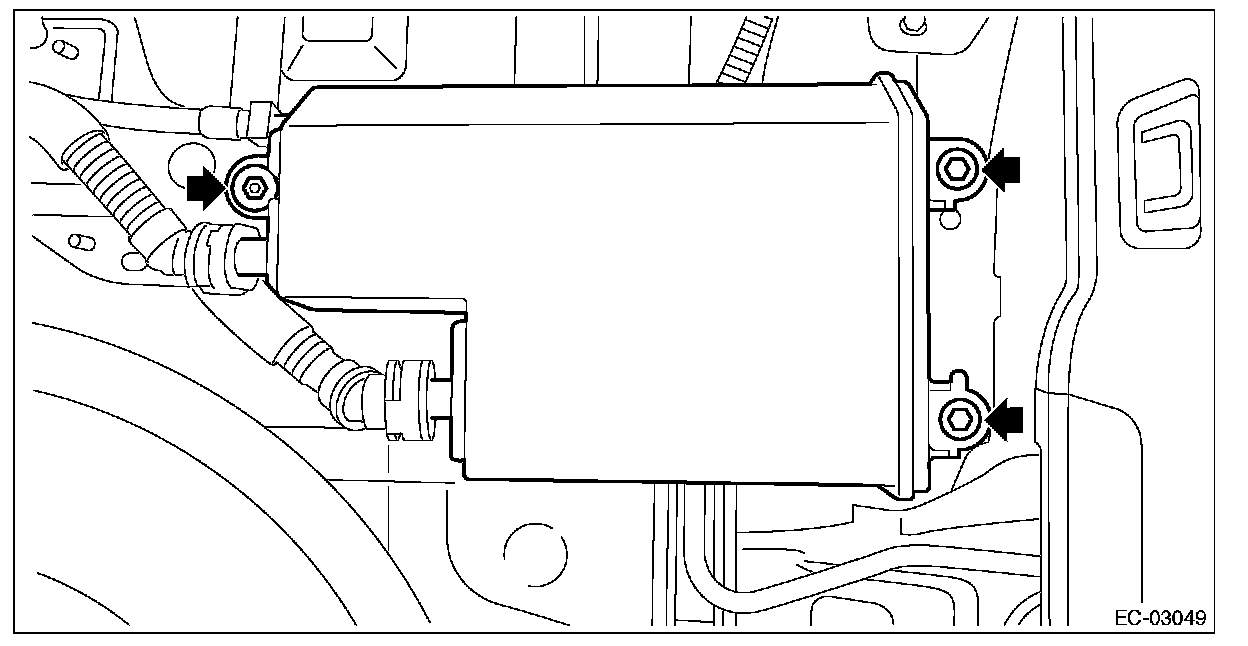 5. Remove the clips that is holding the rear seat backrest cover on the canister cover, and turn over the rear seat backrest cover toward the front side of the vehicle.